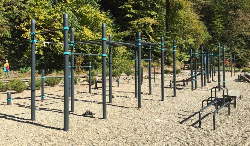 Турники, брусья, рукоходы — антикоррозионное покрытие, крепёж под песчаное основание, комфортный диаметр хвата. Такие уличные спортивные тренажеры поддерживают форматы от базовой ОФП до воркаута.